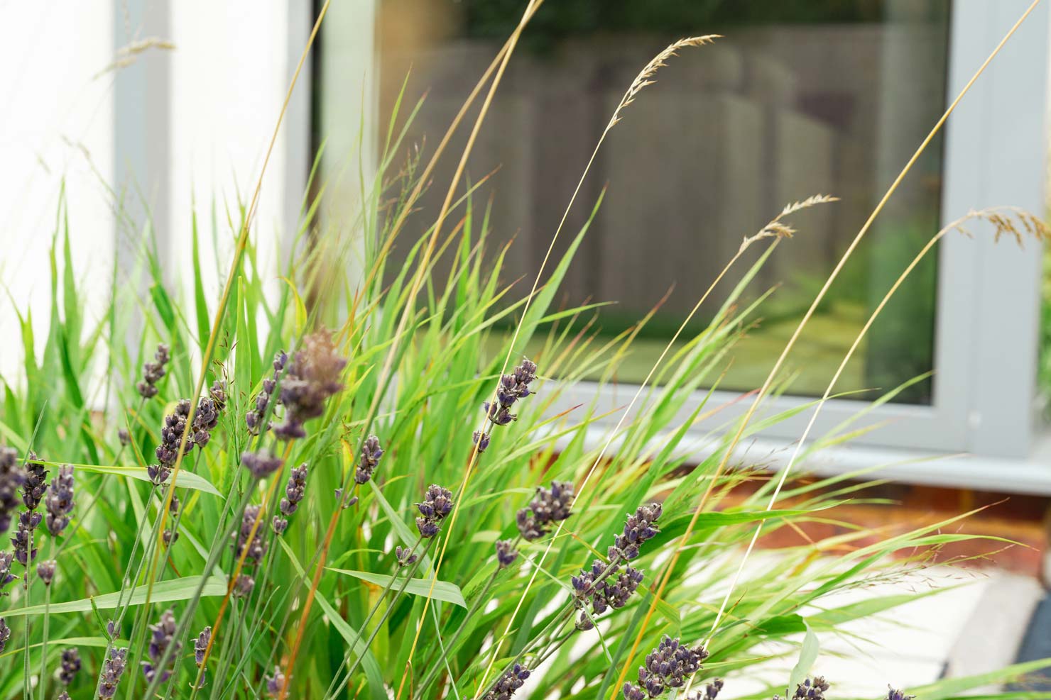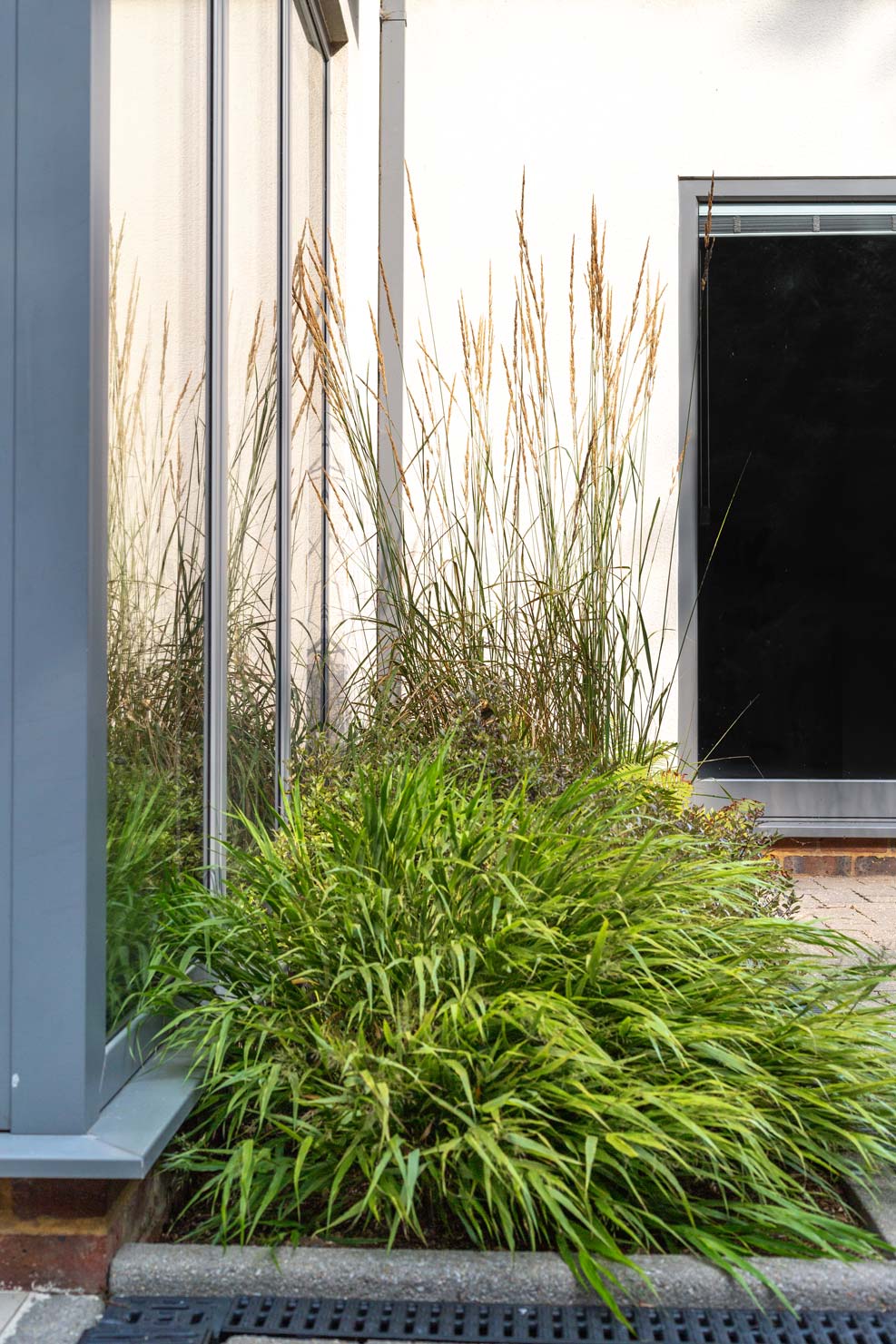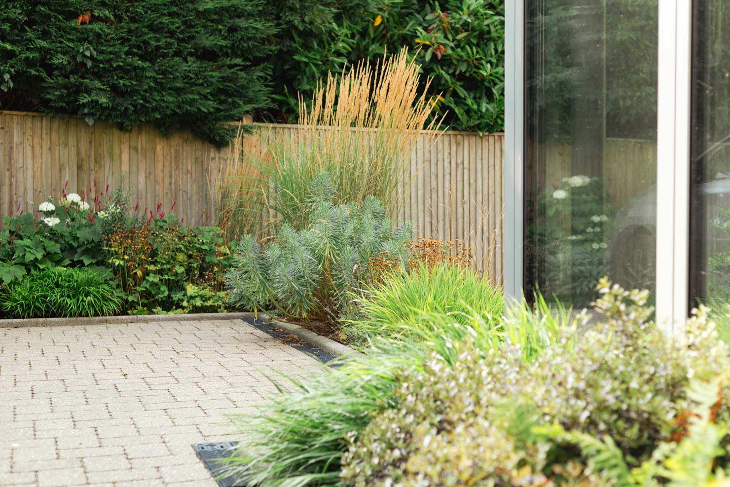 "abundent softening plants blend and harmonise the modern home into its surroundings."