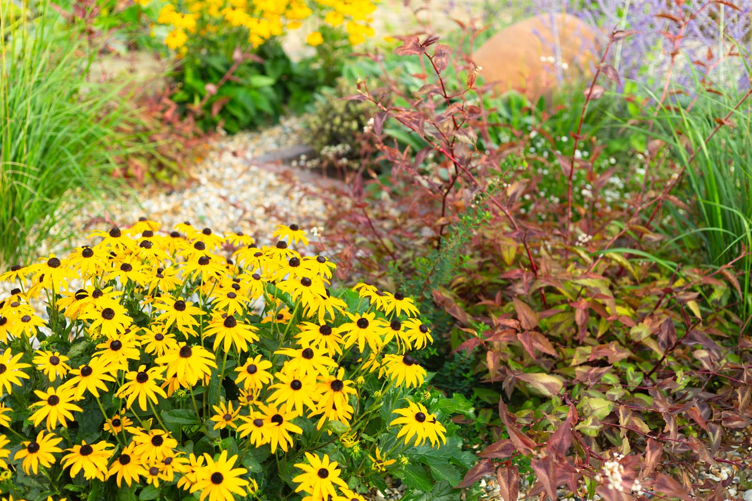 "Grasses sway in the breezes and perennials provide colour in the high season"